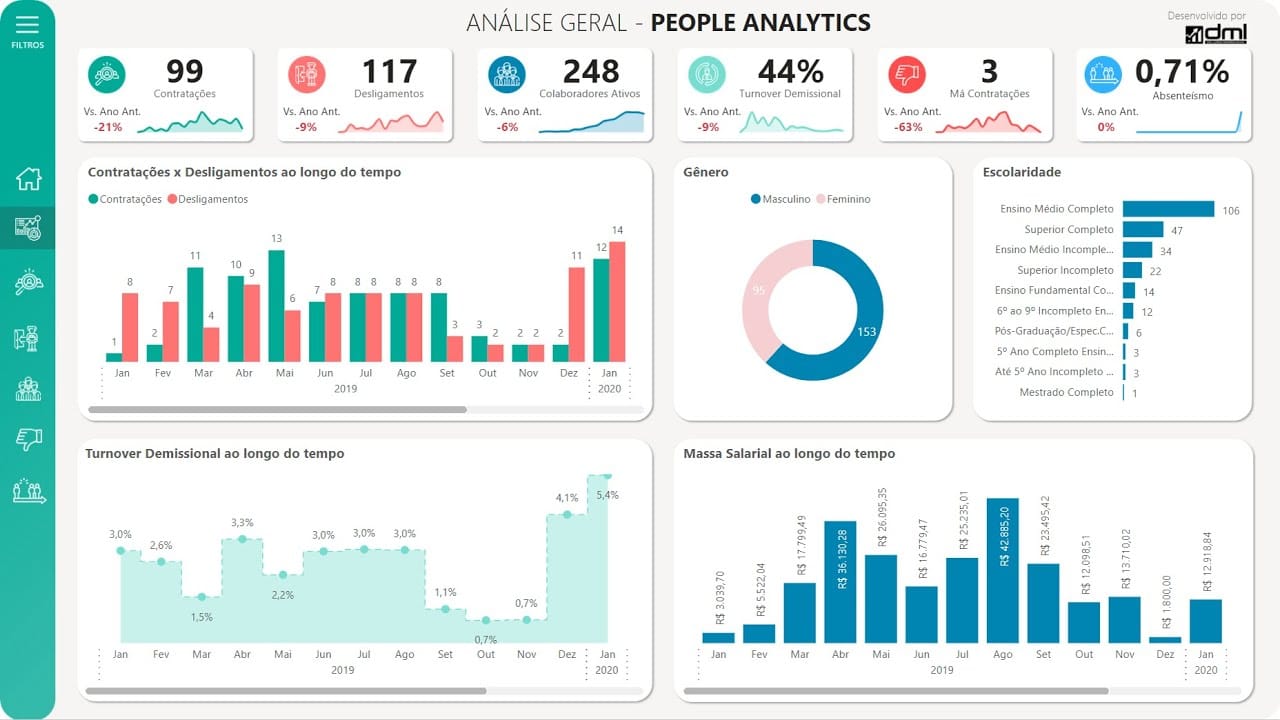 Mensure turnover, absenteísmo e produtividade da equipe. Dashboards de RH ajudam a reduzir custos, melhorar a performance e reter os melhores talentos.